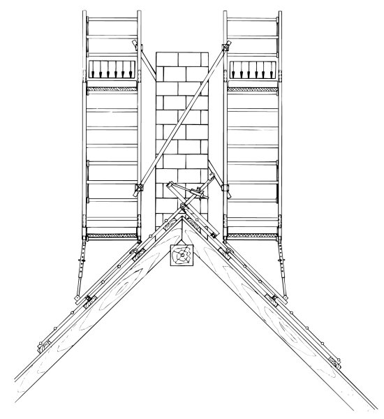 MÜBA Aluminium-Dachkamingerüst Typ DK 4 zweiseitig aufgebaut mit vier Arbeitsbühnen
